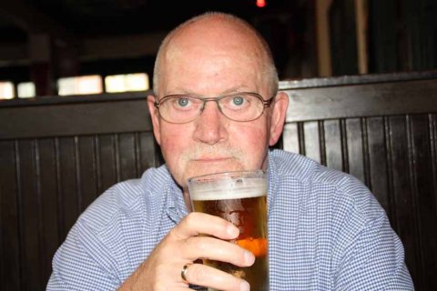 Bjarne nåede lige at finde en øl, inden sengen kalder. Klokken her er 20 om aftenen